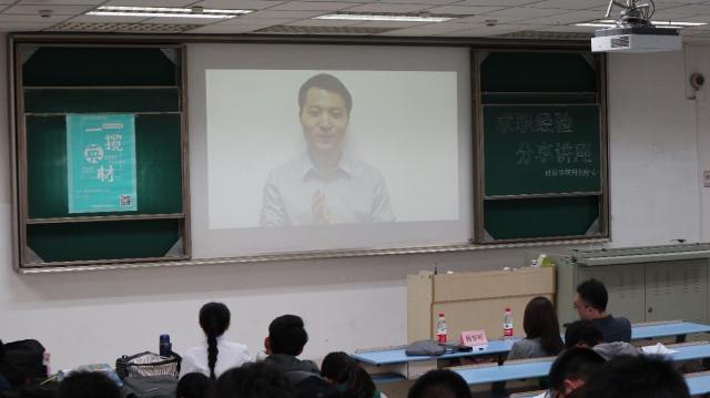 杨振华学长本科期间成绩十分优秀,毕业时荣获“上海市优秀毕业生”和美国州立大学石溪分校博士生全额奖学金。虽然未能到场与同学们面对面交流,但他以录制小视频的方式向在场的同学们传授了宝贵的学习经验。学长先与大家分享了他的目标分解法,即先确定一个属于自己的大目标,再把这个大目标分解成一个一个小目标,一步一步完成任务的方法。然后学长通过举例说明了进行技能课业练习的重要性,并且建议同学们建立自己的学习反馈系统,通过积极的反馈,把学习变成自己上瘾的东西。