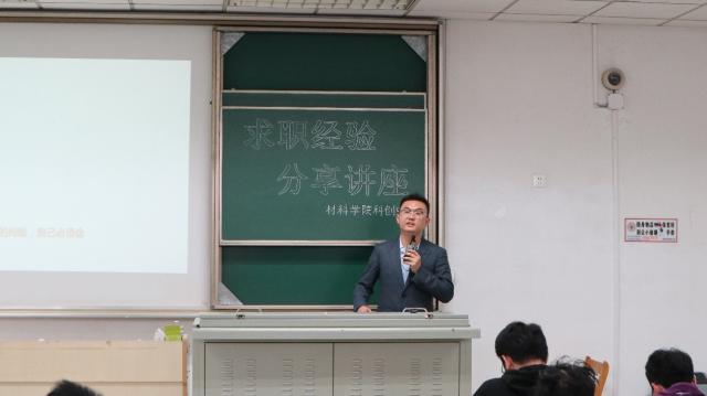 4月24日下午,由材料学院科创中心主办的“一揽英材”系列求职经验分享讲座——材料学院“创新·思想·人生”大讲堂第十三讲在1221教室成功举办。本次讲座旨在帮助同学们提前了解找到理想的工作所需的能力和条件,便于同学们确定努力的方向。员工杨亦可学姐、王聪宇学长出席了本次讲座,由于身在国外无法出席的杨振华学长也录制了一段视频与同学们分享自己的经验。
