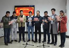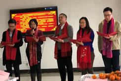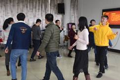 1月11日下午,老员工活动中心二楼活动室,材料公司党政领导、各系所、平台、院办、辅办的老师欢聚一堂,举办了2019年迎新年暨2018年终联欢活动。首先,联欢会在特邀节目-公司17级博士景旸珉的双节棍表演中拉开帷幕,之后,公司党政领导班子以诗朗诵《回望40年,致敬新时代》,与大家一起回顾了改革开放40年以来,学院为纺织工业作出的突出贡献及学院组织机构变迁历程,回顾了学院在学科专业建设、科学研究、人才培养、服务社会、文化传承和国际交流方面取得的成绩,歌颂了几代东华材料人绳绳相继、呕心沥血、砥砺奋进的精神,借以激励新的东华材料人立足当下,展望未来,为了纤维学科更加辉煌的明天,努力不停顿,奋斗不止步。公司辅导员办公室的舞蹈《燃烧我的正能量》,在欢快的节奏中展现了青年教师的青春活力。学院丁明利老师和何佳鸿老师奉献了男生合唱《贵妃醉酒》,公司2018年新进8名教师合唱了《歌唱祖国》,并一一做了自我介绍,展现了材料学院的新生力量。精彩节目中穿插的“一反常态”、“抢凳子”、“一元五角”、“正话反说”、“运气球”等小游戏更是将联欢会推上一个又一个小高潮。最后,活动在高材系黄涛老师的一首《成都》中落下帷幕。