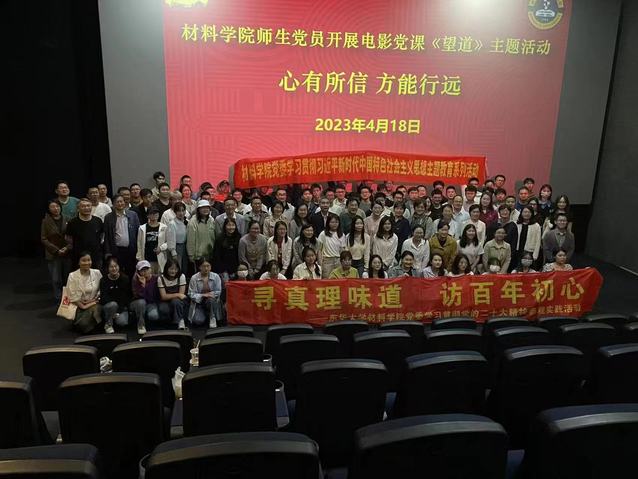 电影党课的最后,与会师生党员在公司党委书记李斌荣同志带领下重温入党誓词,在一句句铿锵有力的宣誓声中,全体党员回望初心使命,砥砺坚定信仰。下一步,材料学院全体师生党员将继续深入学习贯彻党的二十大精神和习近平新时代中国特色社会主义思想,不断汲取精神力量,坚持自己的理想信念,用信仰守护初心,用真理引领使命,众志成城,砥砺前行,为实现中华民族伟大复兴而不懈奋斗!